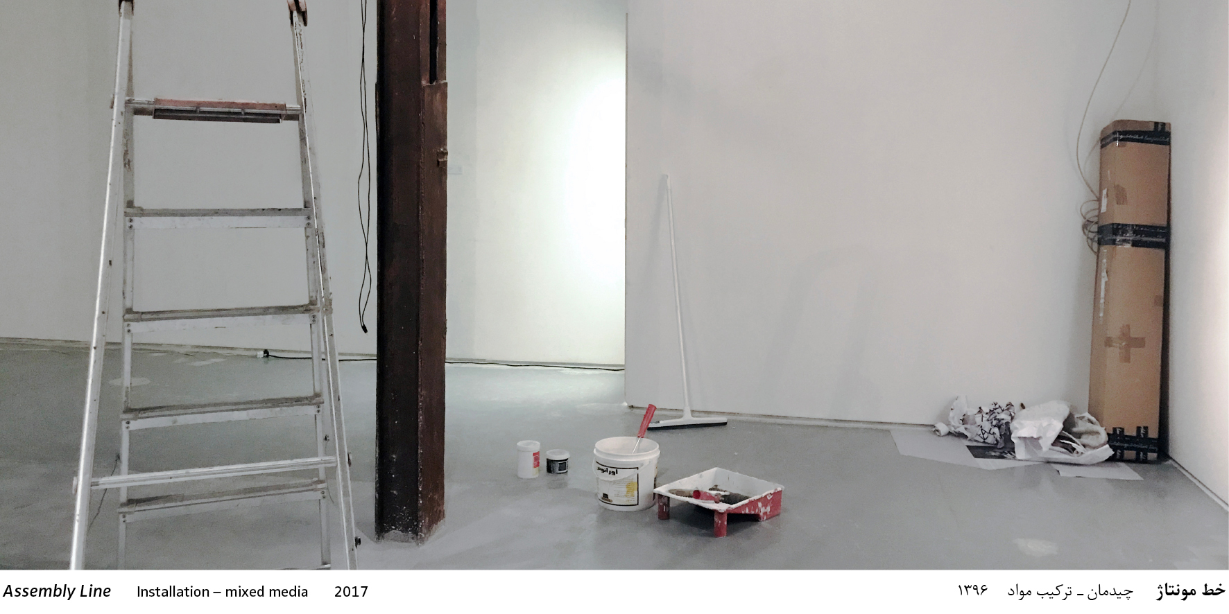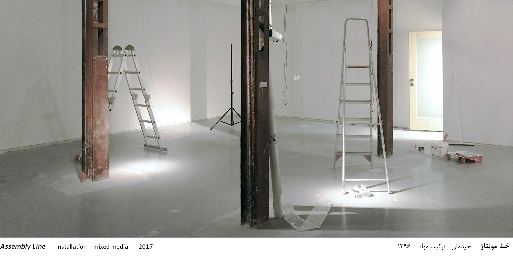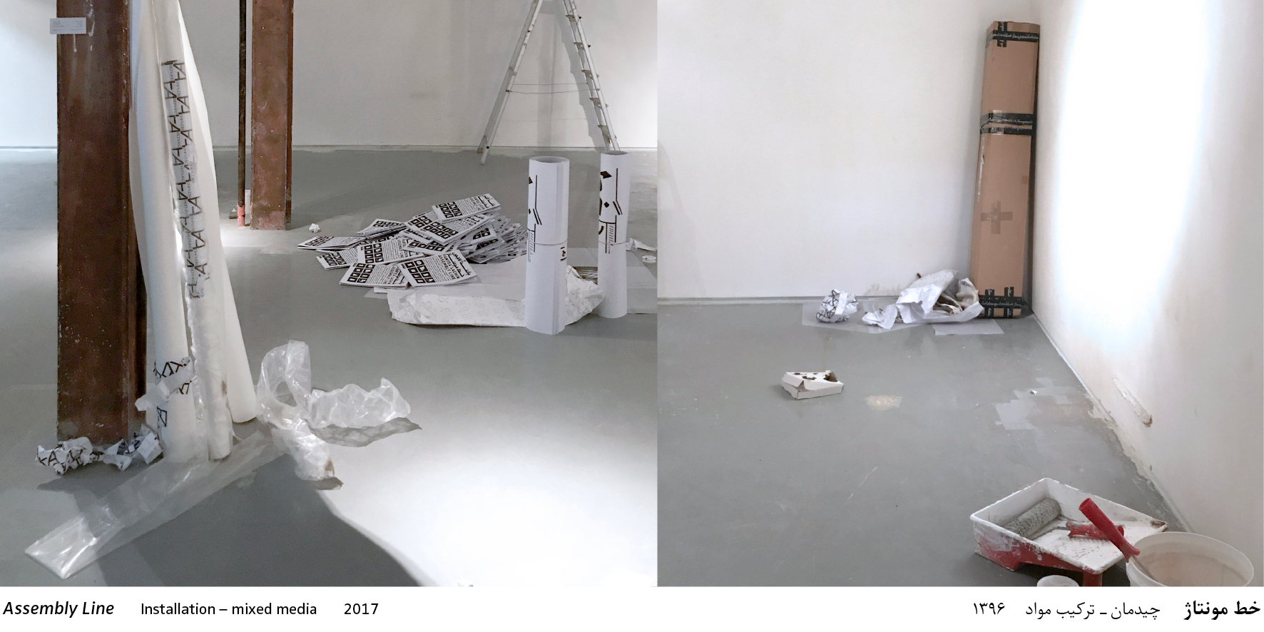 The exhibition space is transformed into a staged set-up (assembly) scenario. At the same time, the artist is present every day and talks to the visitors about art production and expectations of an art exhibition.